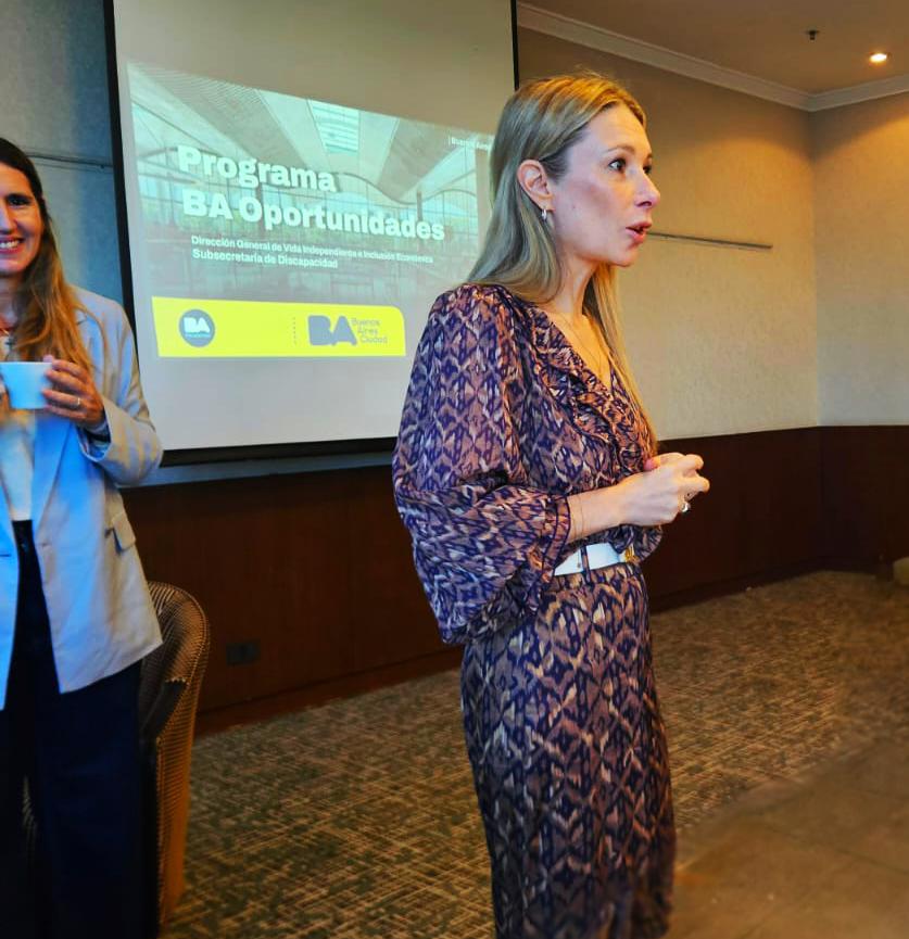 Silvina Alonso explicó en detalle el sistema implementado por el Gobierno de la Ciudad de Buenos Aires para promover la empleabilidad de personas con discapacidad, que abarca distintas etapas: detección de oportunidades, análisis ocupacional, búsqueda de perfiles, capacitación y acompañamiento en la inserción laboral, con un seguimiento posterior.